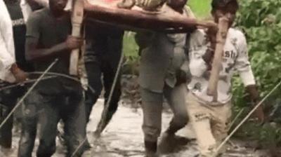 बीमार को अस्पताल ले जाने के लिए सड़क नहीं मिली, इंसानियत ने रास्ता बनाया – खाट पर 2 किलोमीटर चले गांव वाले