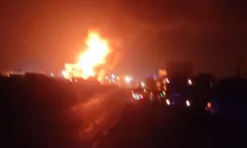 इस हादसे का विडियो भी सामने आया है, जिससे साफ देखा जा सकता है कि आग कितनी भयंकर लगी हुई है. आग लगते ही सिलेंडरों में एक के बाद एक धमाके शुरू हो गए जिनकी आवाज करीब 10 किलोमीटर दूर तक सुनाई दी. धमाकों के बाद कई सिलेंडर खेतों और आसपास की जगहों में गिरते देखे गए. हादसे में कई गाड़ियां आग की चपेट में आने की सूचना है.