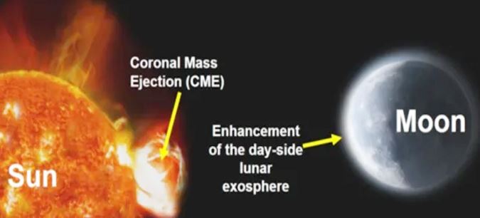 इसरो की एक विज्ञप्ति के मुताबिक चंद्रयान-2 पर लगे उपकरणों में से एक ‘चंद्राज एटमॉस्फेरिक कॉम्पोजिशनल एक्सप्लोरर-2’ ने सूरज से निकलने वाली कोरोनल मास इजेक्शन का चंद्रमा के बाहरी वायुमंडल पर पड़ने वाला असर रिकॉर्ड किया है। सीएचएसीई-2 उपकरण का मुख्य उद्देश्य चंद्रमा के तटस्थ बाहरी वायुमंडल की संरचना, उसका विस्तार और उसमें होने वाले बदलावों का अध्ययन करना है। कोरोनल मास इजेक्शन सौरमंडल में वाले शक्तिशाली विस्फोट होते हैं। इस दौरान सूर्य हीलियम और हाइड्रोजन आयन छोड़ता है। चांद पर इसका काफी असह होता है। इसका कारण है चांद पर वायुमंडल नहीं है और यहां कोई बड़ा चुंबकीय क्षेत्र भी नहीं है। चंद्रयान के डेटा से पता चला है कि कोरनल मास इजेक्शन के चंद्रमा से टकराने के बाद यहां के पतले वायुमंडल पर दबाव एक हजार गुना बढ़ गया। चंद्रमा के पास बहुत पतला वायुमंडल है जिसे एक्सोस्फीयर कहते हैं। यहां गैस के अणु मौजूद हैं। यह चंद्रमा की सतह से सटा हुआ है इसलिए इसे सतह सीमा एक्सोस्फीयर कहते हैं। उल्कापिंडों के टकराने या फिर सूर्य की किरणों और सौर हवा से यह एक्सोस्फीयर बनता है।