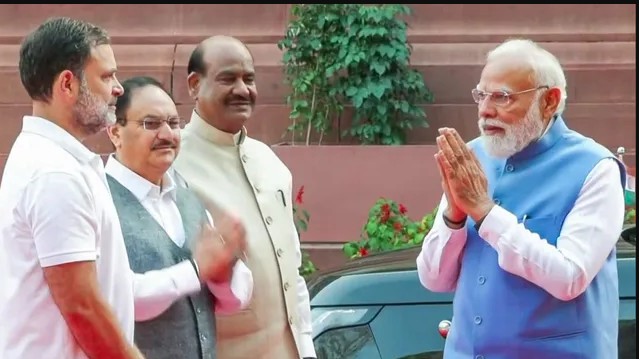 कार से उतरकर मिले पीएम मोदी-राहुल गांधी, संसद परिसर में हुई अहम बातचीत