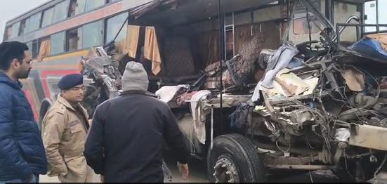 भरतपुर। भरतपुर में स्लीपर बस और ट्रेलर की भीषण टक्कर में मां-बेटे समेत 4 यात्रियों की मौत हो गई। 5 यात्री घायल हो गए। बस कासगंज (उत्तर प्रदेश) से जयपुर जा रही थी। इस दौरान सेवर पुल पर खड़े ट्रेलर में घुस गई। टक्कर इतनी जबरदस्त थी कि बस के परखच्चे उड़ गए। बस में फंसे यात्रियों में चीख-पुकार मच गई। एक्सीडेंट सेवर थाना इलाके में आगरा-जयपुर नेशनल हाईवे पर बुधवार देर रात करीब 2:30 बजे हुआ। सेवर थाना के स्ढ्ढ अवधेश ने बताया- सूचना मिलते ही पुलिस मौके पर पहुंची। स्थानीय लोगों की मदद से बस में फंसे यात्रियों को बाहर निकाला गया। चार लोगों की मौके पर ही मौत हो गई। घायलों को तुरंत आरबीएम अस्पताल में भर्ती करवाया गया। शव मॉच्र्युरी में रखवाए गए।