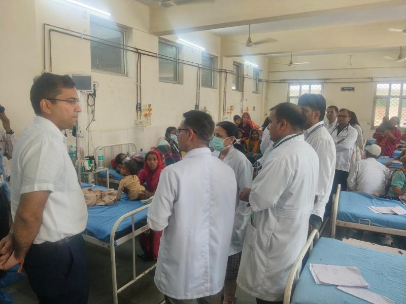 निरीक्षण के दौरान उन्होंने चिकित्सालय के विभिन्न विभागों— एन.आई.सी.यू., आईपीडी, ओपीडी एवं वार्डों का अवलोकन किया। इसके साथ ही उन्होंने प्रयोगशाला की व्यवस्थाओं की समीक्षा भी की। उन्होंने उपचाराधीन बच्चों के परिजनों से संवाद कर उनकी समस्याओं एवं सुझावों को सुना।