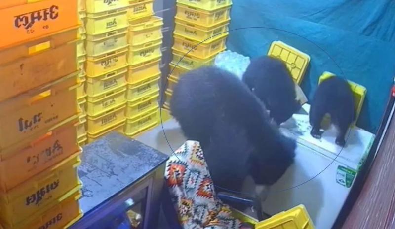 दो सावकों के साथ दुकान में घुसी मादा भालू