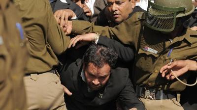 राजस्थान के भिवाड़ी में प्रदर्शन, पुलिस ने किया लाठीचार्ज