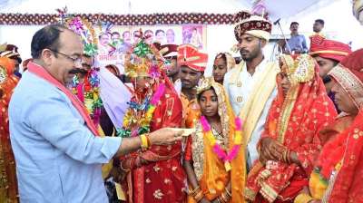 सामूहिक विवाह समारोह में पहुंचे उप मुख्यमंत्री अरुण साव, नवदंपतियों को दिया आशीर्वाद