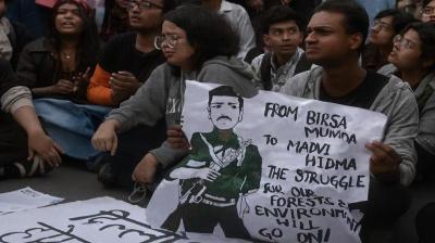 नक्सली हिडमा को लेकर दिल्ली में विरोध प्रदर्शन, 22 लोग गिरफ्तार