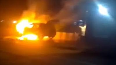 ड्राइवर ने सूझबूझ दिखाते हुए तुरंत गाड़ी रोकी और बाहर निकला
