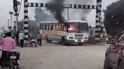 राजस्थान: बस-ट्रक टक्कर के बाद आग का गोला बनी बस